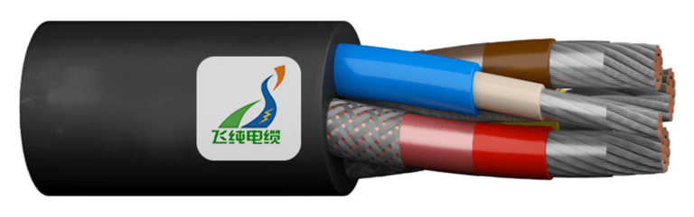 Кабель КГЭС для самоходных вагонов с электрическим приводом на напряжение 1140В/220В. Повышенная гибкость, стойкость к перегибам до 40000 циклов, экранированная конструкция. Технические спецификации от Anhui Feichun Special Cable Co.